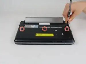 Отвинтите три винта на крышке отсека HDD на нижней стороне ноутбука крестовой отверткой Phillips #0.