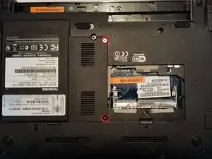 Теперь открутите два винта (T6 Torx) крышки жесткого диска и беспроводной карты. Снимите крышку, приподняв и слегка потянув за правую сторону.