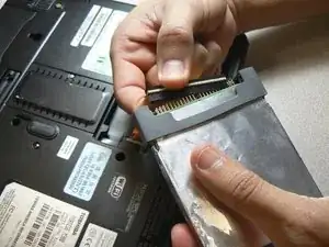 Осторожно извлеките жесткий диск из IDE-кабеля, потянув за черный разъем.