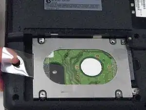 Найдите тонкую пластиковую вставку, сложенную с правой стороны корпуса жесткого диска.
