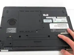 Переверните ноутбук так, чтобы батарея была обращена к вам, а передняя часть — от вас, как показано на диаграмме.