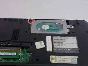 Удалите один винт Philips #0 длиной 3.0 мм, который удерживает жесткий диск на месте.