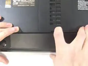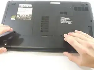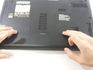 Переверните ноутбук так, чтобы нижняя часть была направлена вверх.