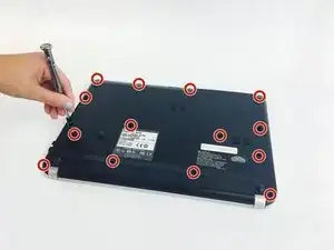 Удалите четырнадцать винтов 3.75мм с помощью отвертки Phillips #0, как показано.