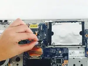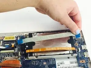 Отключите оба шлейфа, отогнув белые язычки на обоих концах шлейфов и аккуратно вытянув шлейфы.