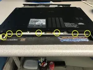 Используя одну или несколько пластиковых лопаток, отделите нижнюю часть ноутбука от остальной части устройства.