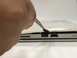 Используя лопатку, отожмите нижнюю крышку ноутбука от остальной части устройства.