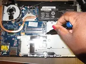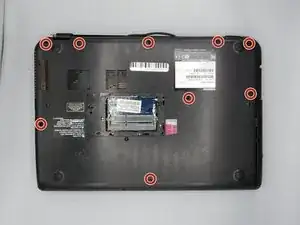Используйте отвертку Phillips #0, чтобы открутить восемь винтов, закрепляющих нижнюю панель.
