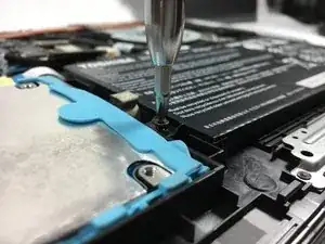 Удалите четыре винта с головкой PХ1 размером 0,5 мм на аккумуляторе с помощью отвертки PH1.