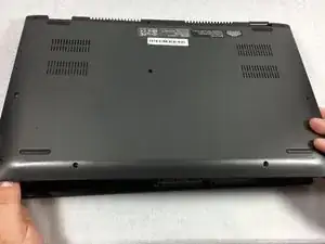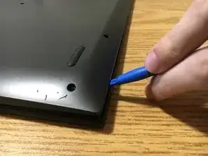 Вставьте инструмент для открытия между задней панелью и ноутбуком, чтобы поддеть ее.