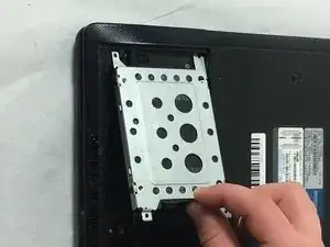 Отключите жесткий диск от ноутбука, сдвинув его к внешнему краю.