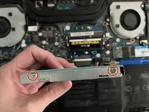 Удалите два винта 3,0 мм с каждой стороны крепления HDD с помощью отвертки Phillips #1.