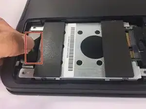 Найдите черную пластиковую вкладку, прикрепленную к нижней части жесткого диска, и потяните ее прямо на себя.