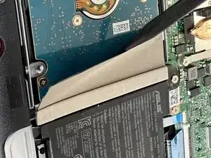 Вы можете посмотреть шаги по отключению батареи для Asus Vivobook F412DA: Отсоединение разъема батареи, которые такие же, как и в этой модели.