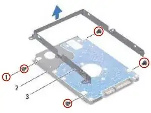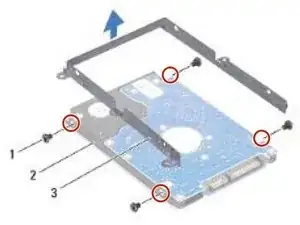 Удалите четыре винта, которые крепят кронштейн жесткого диска к жесткому диску.
