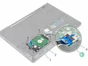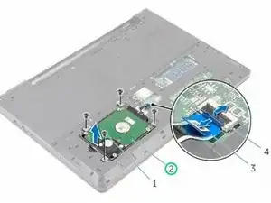 Удалите винты, которые фиксируют сборку жесткого диска к основанию компьютера.
