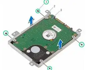 Замените винты, которые фиксируют кронштейн жесткого диска к жесткому диску.