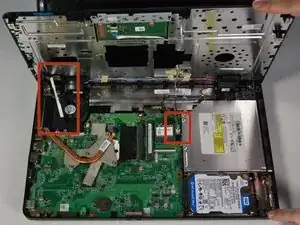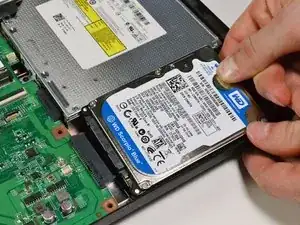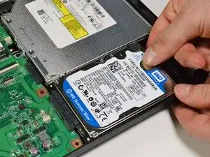 Сдвиньте жесткий диск в правую сторону корпуса ноутбука, чтобы извлечь его.