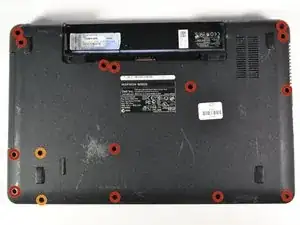 Удалите четырнадцать винтов Phillips #0 длиной 7/16" с нижней стороны ноутбука.