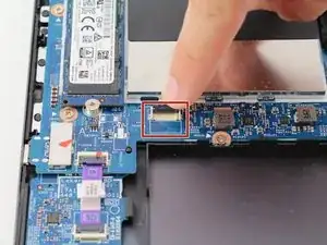 Поднимите черную застежку, удерживающую кабель соединения жесткого диска с ноутбуком, чтобы снять кабель.