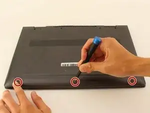 Используйте отвертку Torx T5 (биту T5) для удаления трех винтов по 5 мм, находящихся у нижнего края ноутбука.