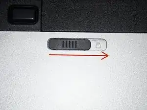 После выключения компьютера извлеките аккумулятор. Поверните фиксатор в положение «разблокировано».