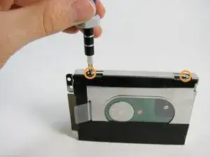 Используя крестовую отвертку Phillips #1, отвинтите четыре монтажных винта 3 мм по обеим сторонам рамки жесткого диска (по 2 с каждой стороны).