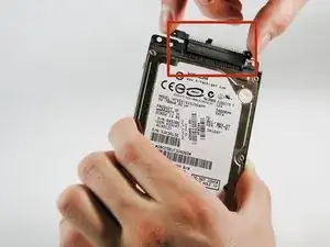 Начните с осторожного вытягивания адаптера жесткого диска HP с конца диска.