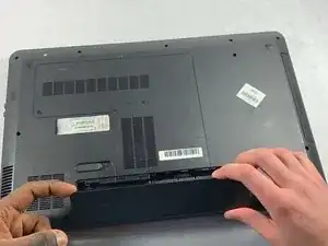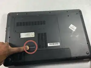 Сдвиньте переключатель над аккумулятором к центру ноутбука.
