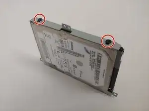 С помощью отвертки Phillips #1 выкрутите три винта длиной 3 мм, расположенные по краю крепления жесткого диска.