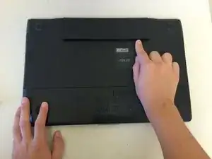 Оттяните заднюю панель от корпуса ноутбука.