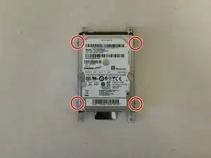 Снимите четыре винта на боковой стороне жесткого диска и кронштейна.