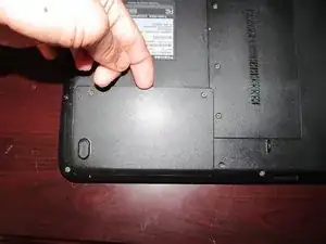 Выверните 2 винта крышки отсека жесткого диска. Подденьте крышку пластиковой лопаткой.