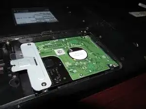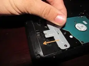 Выверните винт, фиксирующий жесткий диск в компьютере. Сдвиньте диск назад, чтобы извлечь его из ноутбука.