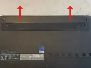 Удерживая замки слева и справа в отключенном состоянии, потяните батарею наружу в направлении петли экрана.