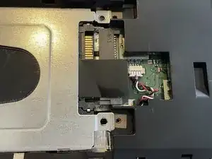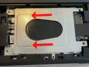 Используя черную язычок, поднимите корпус диска и извлеките его из устройства.