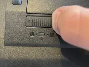 На нижней стороне устройства сдвиньте замок батареи с правой стороны вправо.