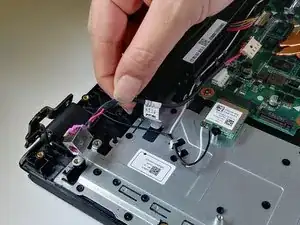 Учитывая наличие небольшого провода динамика, аккуратно поднимите только левую сторону нижнего кожуха.