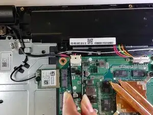 Используя пинцет с тупыми концами, нажмите на защёлки маленького белого разъёма, чтобы отсоединить его от материнской платы.