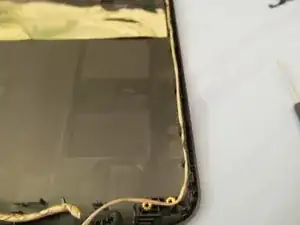Аккуратно оторвите небольшой кусок ленты от задней стороны ЖК-дисплея. Эта лента помогает удерживать кабель дисплея на месте.