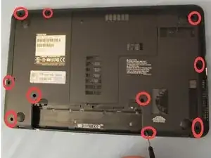 Далее снимите 10 винтов, показанных на изображении. Все они находятся в нижней части корпуса.