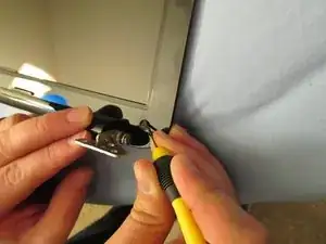 Откройте ноутбук так, чтобы петли заняли вертикальное положение, а не были заподлицо с винтами, которые вы только что сняли.