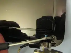 Осторожно используйте очень маленькую плоскую отвёртку точности, чтобы снять пластиковые заглушки, закрывающие винты LCD в углах.