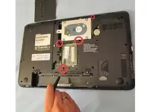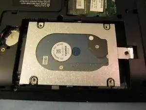После удаления винта сдвиньте кожух жесткого диска вправо и извлеките его.