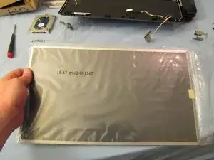 В конце извлеките ваш новый ЖК-экран, который вы должны были приобрести на www.laptopscreen.com, и выполните обратную процедуру для установки.