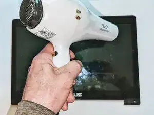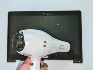 Подогрейте передние кромки сенсорного экрана с помощью iOpener, термопистолета или фена, чтобы размягчить клей, фиксирующий ЖК‑панель к дигитайзеру.