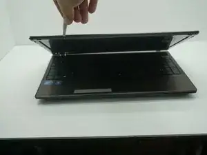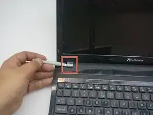 Используйте крестовую отвёртку Phillips #0, чтобы выкрутить винты, расположенные в верхних углах экрана.