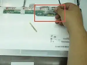 Отключите ЖК-кабели на задней стороне экрана, затем снимите экран.
