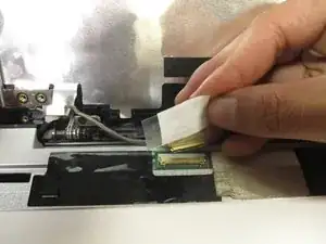 Снимите прозрачную наклейку, покрывающую шлейф дисплея у основания ЖК.
