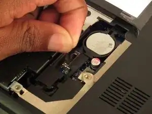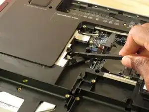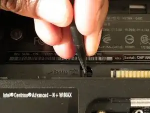 Слева от разъёма батареи находится защёлка для клавиатуры. Используйте лопатку, чтобы освободить клавиатуру.